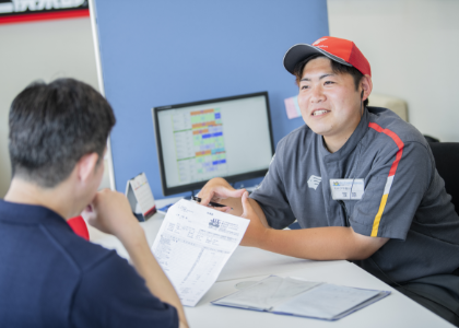 若いスタッフでもお客様のニーズに合った車検コースをしっかりと提案できるのが千歳SSの強み。