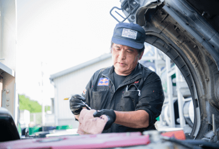 性能の良いオイルの提案は、交換頻度の低下や燃料費削 減にもなりますし、お客様と関係を深めることで、エン ジンオイル以外の油剤や備品の提供にもつながっていま す。お客様にとっては、色々な部材の発注の手間が省け る上、経費や時間の削減にもなりますからね。お困りご とを解決しつつ、1 つのことから他の商品へと展開して いく、当社目玉の新規事業となっています。
