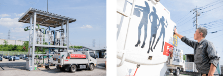 「当社全体のブランディングは、自分たちの仕事を少しでも格好良く見せていこう、働くモチベーションを上げていこうということが目的。〝パトロール給油〟のローリーもタンクの後ろに女性3名のシルエットをあしらった、ちょっと奇抜なデザインになっていまして、実はその真ん中は何を隠そう私なんです(笑)。この業界、女性社長って非常に珍しいのですが、だったらそれを全面的にアピールしてしまおうというアイデアです。ローリーを運転する社員は少し恥ずかしいかもしれませんが、お客様や地域の皆さんが一度見たら忘れられないと思いますね」
