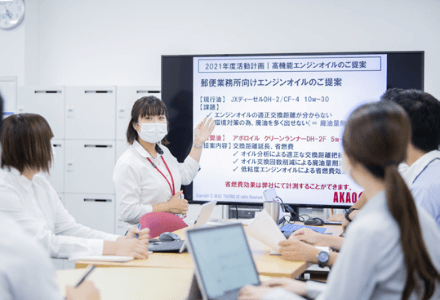 赤尾商事株式会社のコーポレートメッセージは「なめらか あったか 赤尾ならでは!」。潤滑油販売を原点に、人々の暮らしをなめらかに、あったかにしようという意味が込められています。社員の皆さん一人ひとりが正にこの言葉を体現し、真摯に、そして日々明るく営業活動に取り組んでいます。
